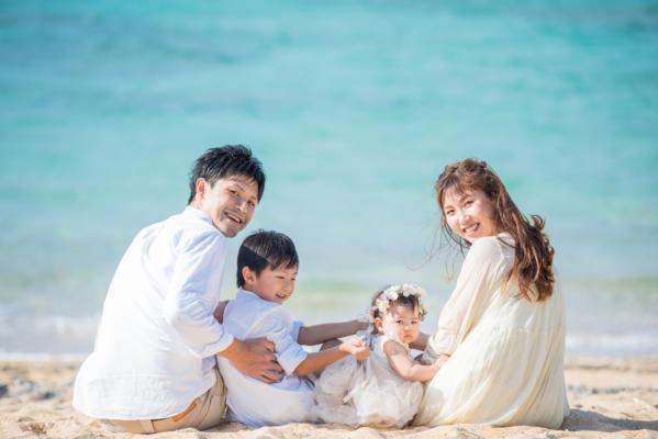沖縄のビーチ、青い空や海を背景にご家族の特別な瞬間を記憶と共にかたちに残します。